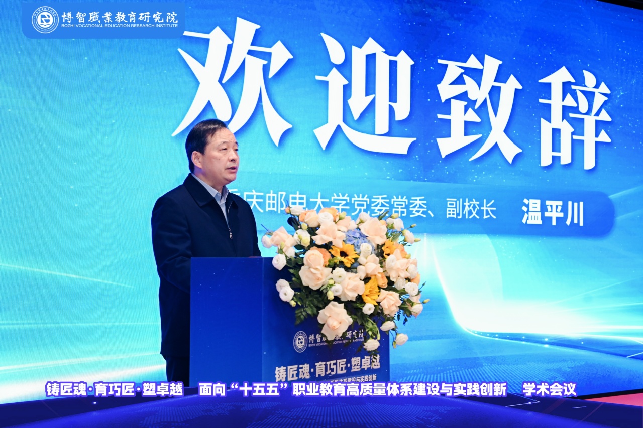 重庆邮电大学党委常委、副校长温平川在欢迎辞中,肯定了学会在推动职业教育与继续教育融合发展中的桥梁纽带作用,期待以本次会议为契机,深化多方合作,共建终身学习体系。
