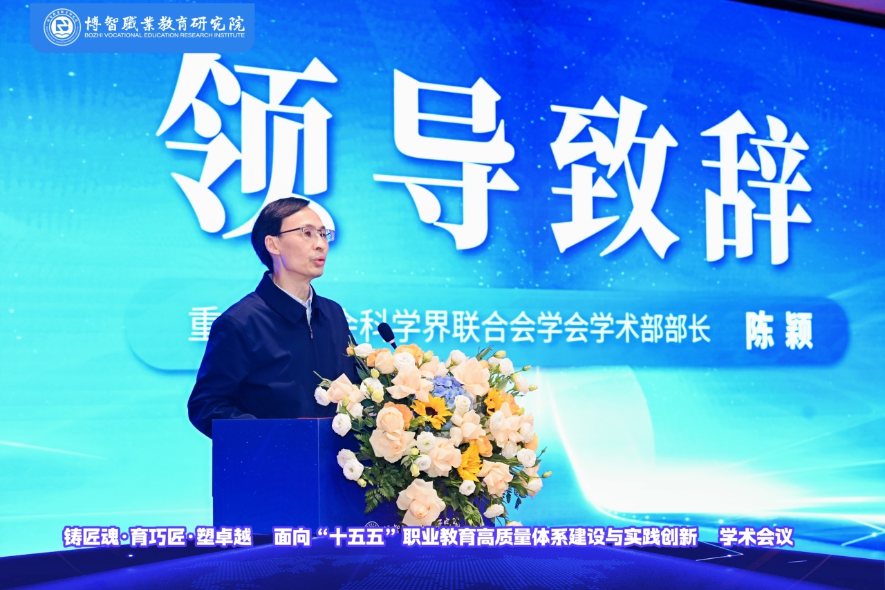 重庆市社会科学界联合会学会学术部部长陈颖在致辞中,高度认可重庆市继续教育学会在职普融通、产教融合、科教融汇等领域的显著成效,称赞学会充分发挥智力密集、资源丰富的优势,为职业教育改革发展提供了有力支撑,期待学会持续深化理论研究与实践探索,为全市乃至全国职教高质量发展贡献更多智慧。
