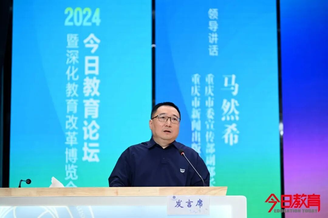 在开幕式上,重庆市委宣传部副部长、重庆市新闻出版局(版权局)局长马然希对本次论坛的顺利启幕及今日教育杂志社创社二十周年表示祝贺,并以重庆山水之城为喻,强调教育与出版紧密相连,“就像重庆这座城市一样,山水相依,琴瑟和鸣”。